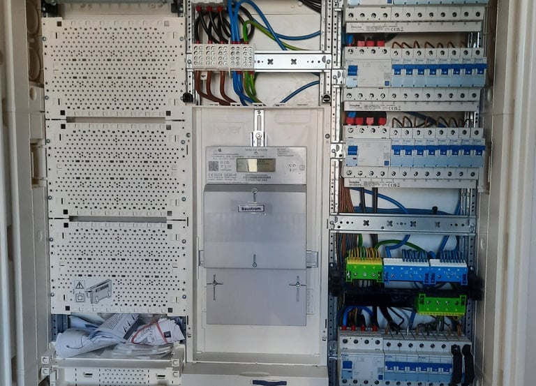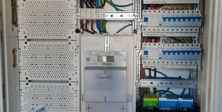 Neuinstallation, Altbausanierung, Umbau und Modernisierung von Zählerplätzen und Verteilungen, Netzwerk- und Datenverkabelung, Beleuchtungstechnik sowie Anmeldung und Änderung von Elektroanschlüssen beim Stromnetzbetreiber.